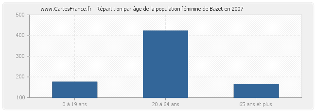 - Femmes de 20 à 64 ans habitant Bazet : 423