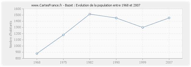La population de Bazet était de 1 454 habitants en 2007, 1 300 habitants en 1999, 1 453 habitants en 1990, 1 516 habitants en 1982, 1 180 habitants en 1975 et 878 habitants en 1968.
