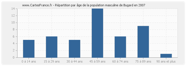 - Hommes de 45 à 59 ans habitant Bugard : 14