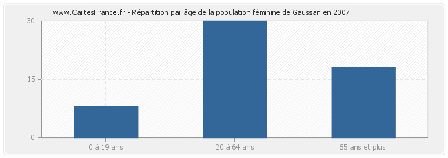 - Femmes de 20 à 64 ans habitant Gaussan : 30