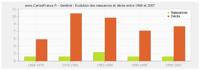 Gembrie : évolution des naissances et décès de 1968 à 2007