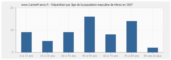 - Population de Hères de 45 à 59 ans : 25 habitants