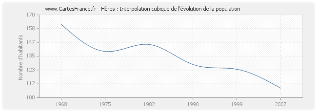 La population de Hères était de 108 habitants en 2007, 124 habitants en 1999, 128 habitants en 1990, 145 habitants en 1982, 139 habitants en 1975 et 162 habitants en 1968.