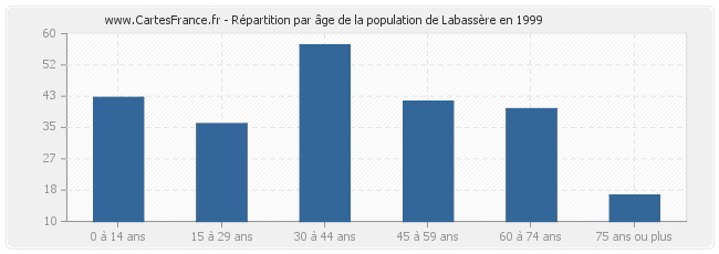 - Population de Labassère de 30 à 44 ans : 57 habitants