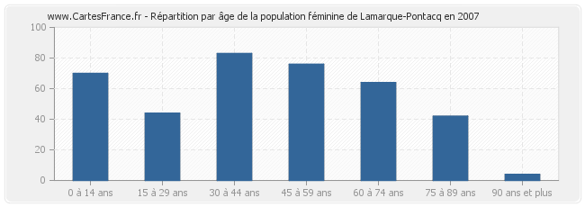 Répartition de la population féminine de Lamarque-Pontacq par âge en 2007 :