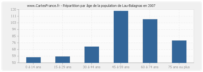 - Population de Lau-Balagnas de 45 à 59 ans : 118 habitants
