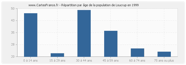 - Population de Loucrup de 30 à 44 ans : 49 habitants