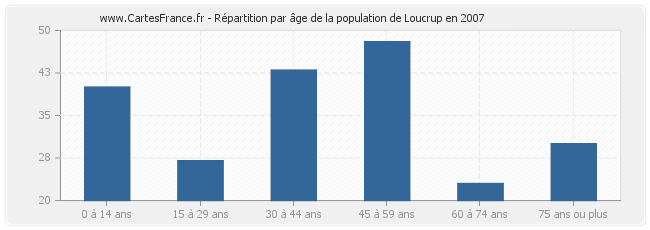 - Population de Loucrup de 45 à 59 ans : 48 habitants