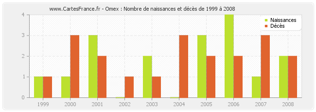 La population d'Omex était de 205 habitants en 1999, 179 habitants en 1990, 169 habitants en 1982, 165 habitants en 1975 et 164 habitants en 1968.