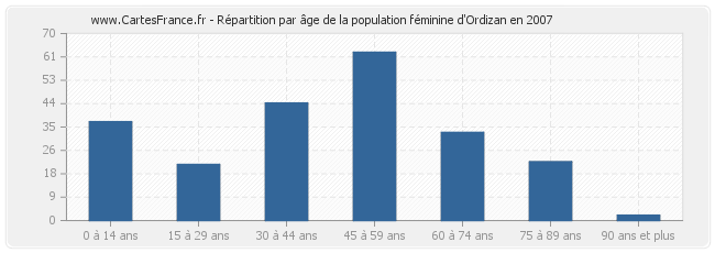 - Femmes de 45 à 59 ans habitant Ordizan : 63