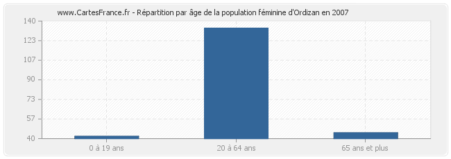Répartition de la population féminine d'Ordizan par âge en 2007 :