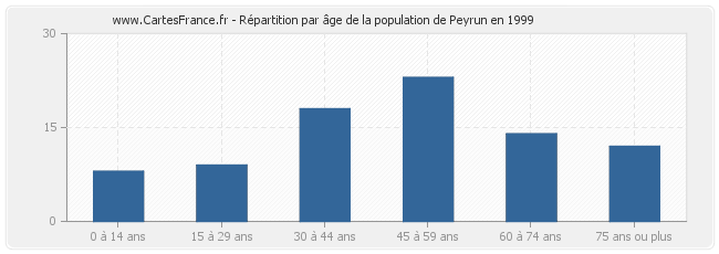 - Population de Peyrun de 45 à 59 ans : 23 habitants