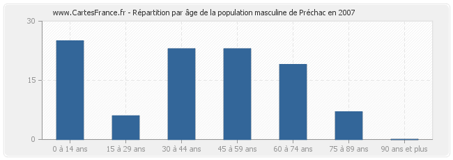 Répartition de la population masculine de Préchac par âge en 2007 :