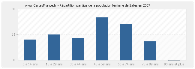 - Femmes de 45 à 59 ans habitant Salles : 25