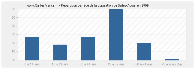- Population de Salles-Adour de 45 à 59 ans : 90 habitants
