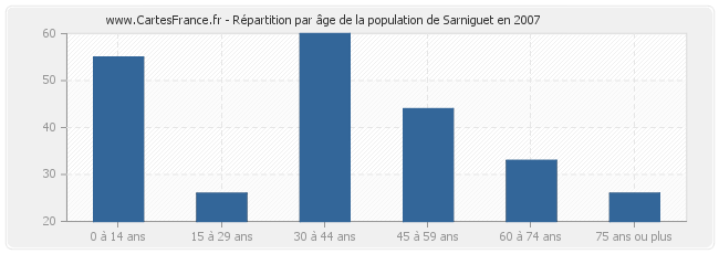 - Population de Sarniguet de 30 à 44 ans : 60 habitants