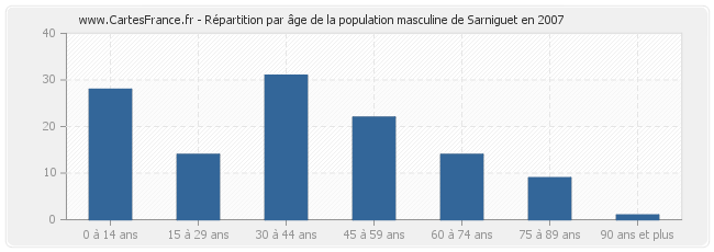 Répartition de la population masculine de Sarniguet par âge en 2007 :
