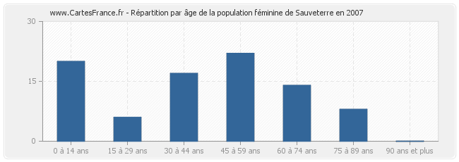 Répartition de la population féminine de Sauveterre par âge en 2007 :
