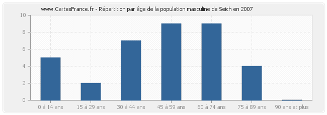 - Hommes de 0 à 14 ans habitant Seich : 5
