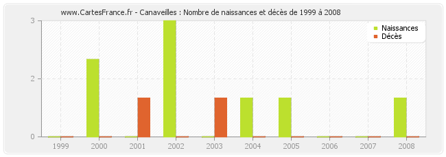 - Canaveilles en 2008 : 1 naissances et 0 décès