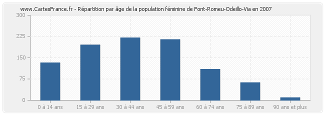 - Femmes de 45 à 59 ans habitant Font-Romeu-Odeillo-Via : 214