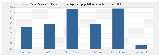 - Population de Le Perthus de 60 à 74 ans : 128 habitants