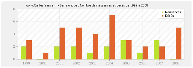 Serralongue : naissances et décès de 1999 à 2008