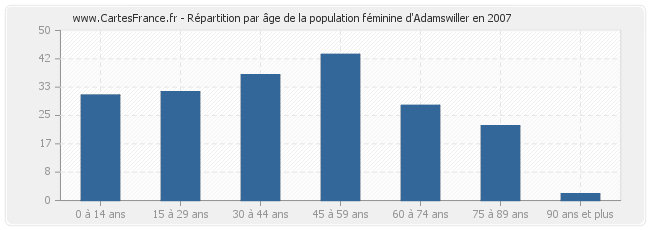 - Femmes de 45 à 59 ans habitant Adamswiller : 43
