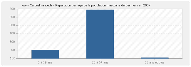 Répartition de la population masculine de Beinheim par âge en 2007 :