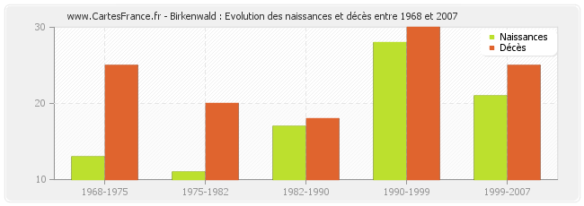 Birkenwald : évolution des naissances et décès de 1968 à 2007