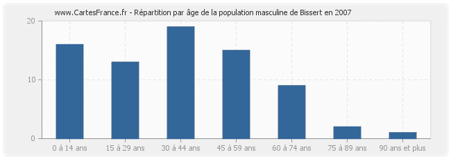 - Hommes de 30 à 44 ans habitant Bissert : 19