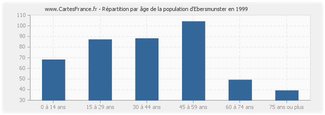 - Population d'Ebersmunster de 30 à 44 ans : 109 habitants