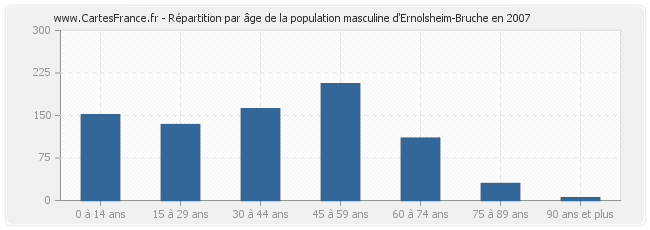 Répartition de la population masculine d'Ernolsheim-Bruche par âge en 2007 :