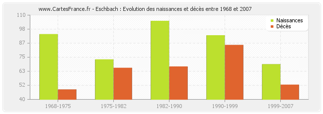 Eschbach : évolution des naissances et décès de 1968 à 2007