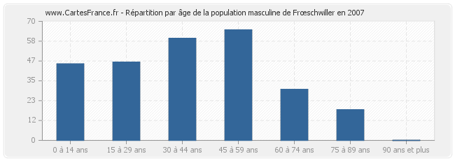 Répartition de la population masculine de Frœschwiller par âge en 2007 :