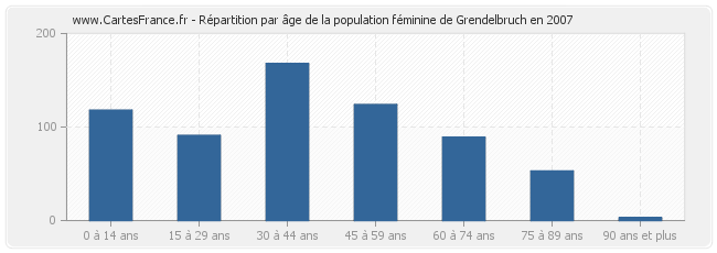 Répartition de la population féminine de Grendelbruch par âge en 2007 :