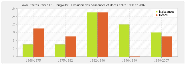 Hengwiller : évolution des naissances et décès de 1968 à 2007
