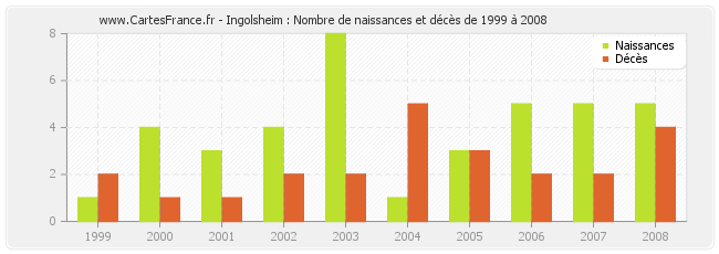 - Ingolsheim en 2008 : 5 naissances et 4 décès