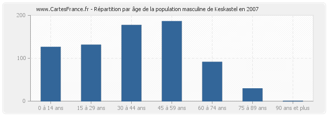 Répartition de la population masculine de Keskastel par âge en 2007 :
