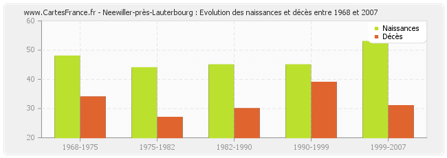 Neewiller-près-Lauterbourg : évolution des naissances et décès de 1968 à 2007