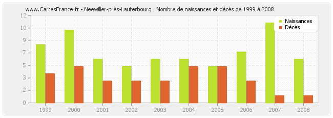 Neewiller-près-Lauterbourg : naissances et décès de 1999 à 2008