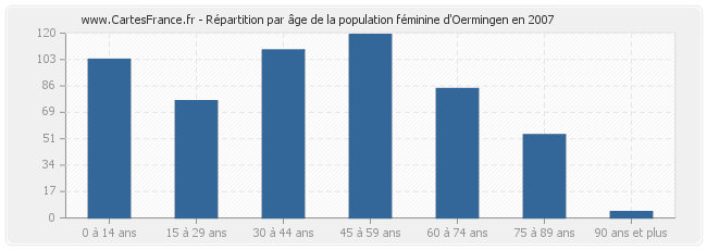 Répartition de la population féminine d'Oermingen par âge en 2007 :