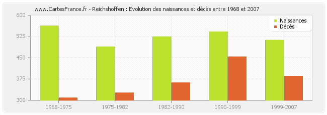 Reichshoffen : évolution des naissances et décès de 1968 à 2007