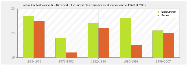 Rimsdorf : évolution des naissances et décès de 1968 à 2007