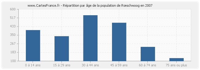 - Population de Rœschwoog de 30 à 44 ans : 540 habitants