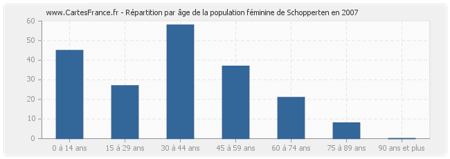 Répartition de la population féminine de Schopperten par âge en 2007 :