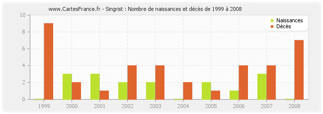 Singrist : évolution des naissances et décès de 1968 à 2007