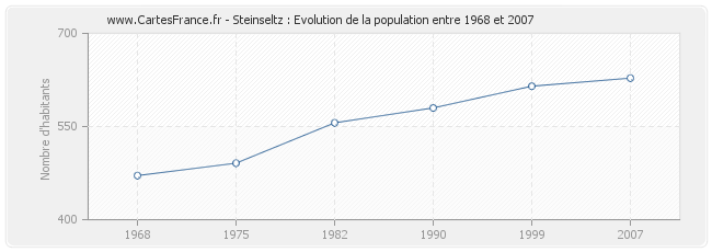 Historique de la population de Steinseltz de 1968 à 2007 :