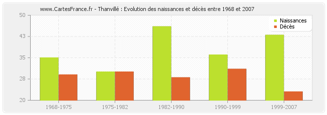 Thanvillé : évolution des naissances et décès de 1968 à 2007