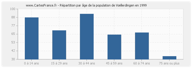- Population de Vœllerdingen de 30 à 44 ans : 93 habitants